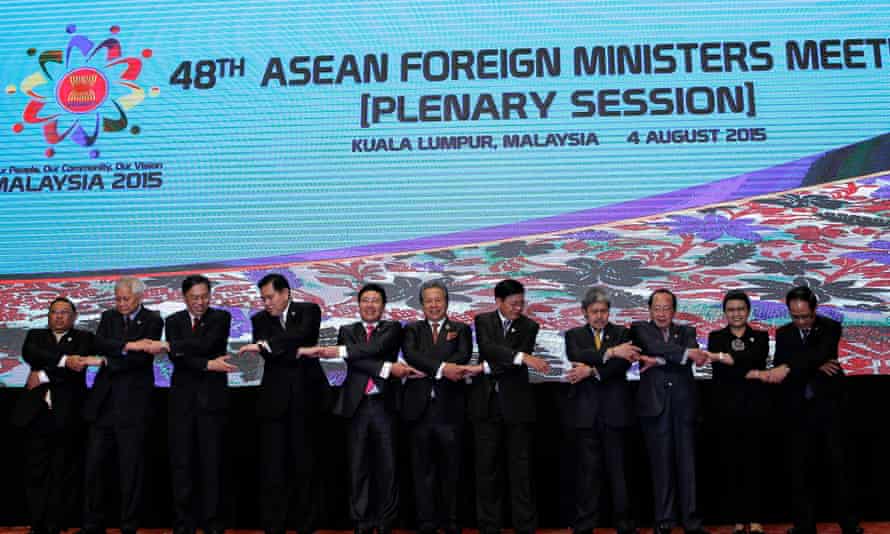 The foreign minister, U Wunna Maung Lwin (far left) attends an Asean session in Kuala Lumpur in 2015. Photograph: Fazry Ismail/EPA